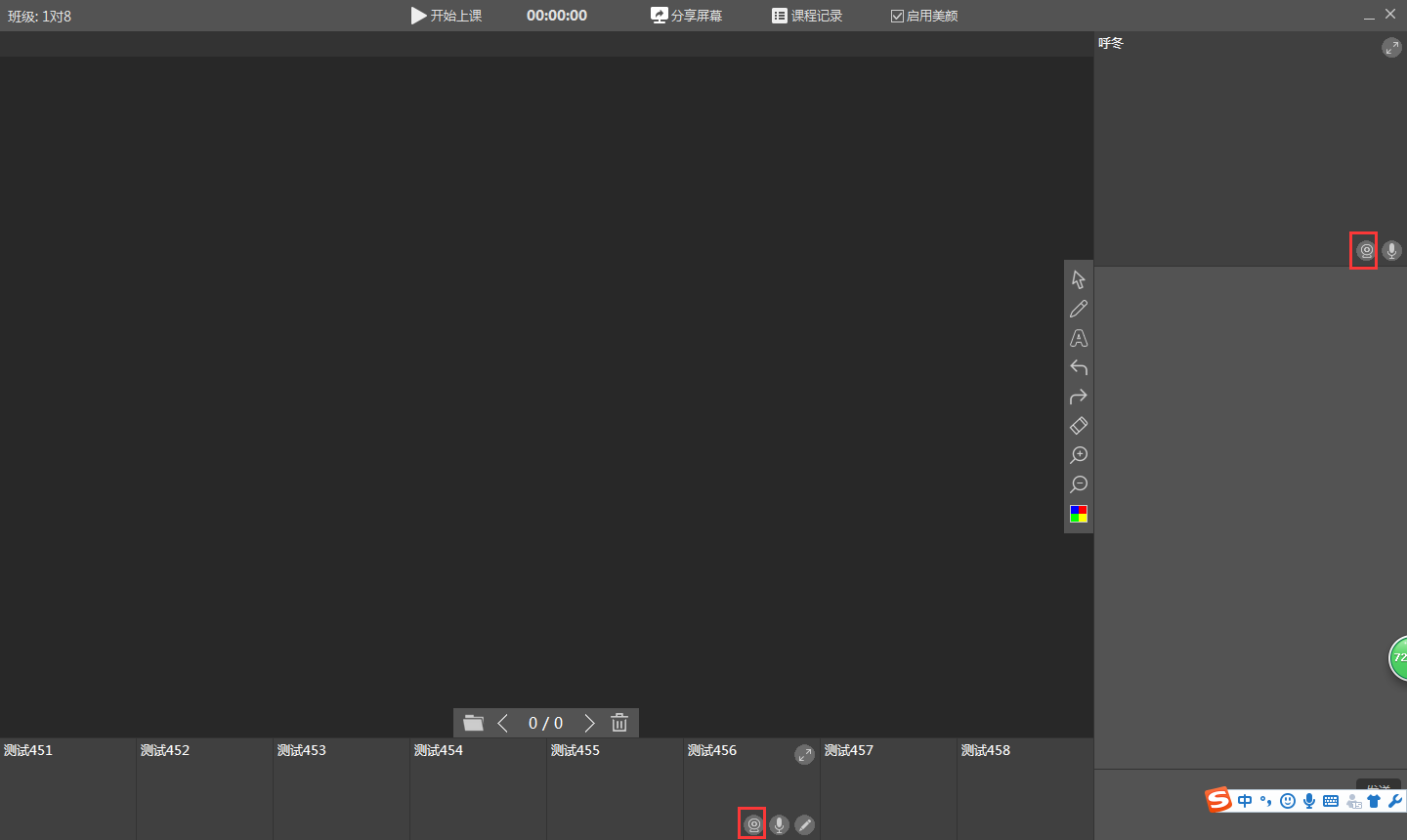 在老师和学生视频画面的右下角,点击【摄像头】按钮,控制视频画面的开/关。(老师可以开关自己和学生的视频画面,学生不能操作)