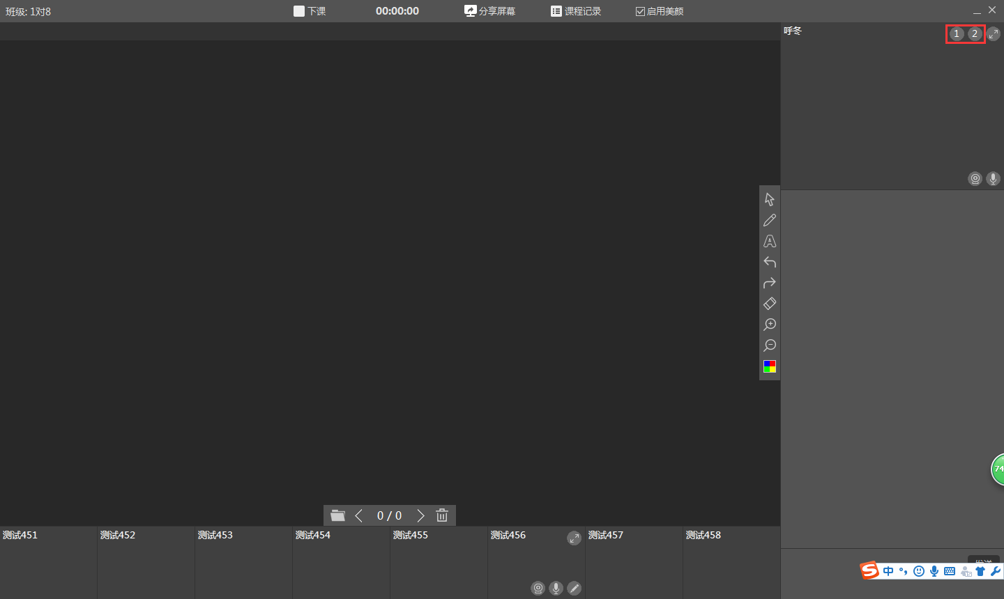 如果老师的电脑连接了2个及以上的摄像头,在老师视频画面的右上角会显示相应的数字,点击数字便可完成摄像头的切换。