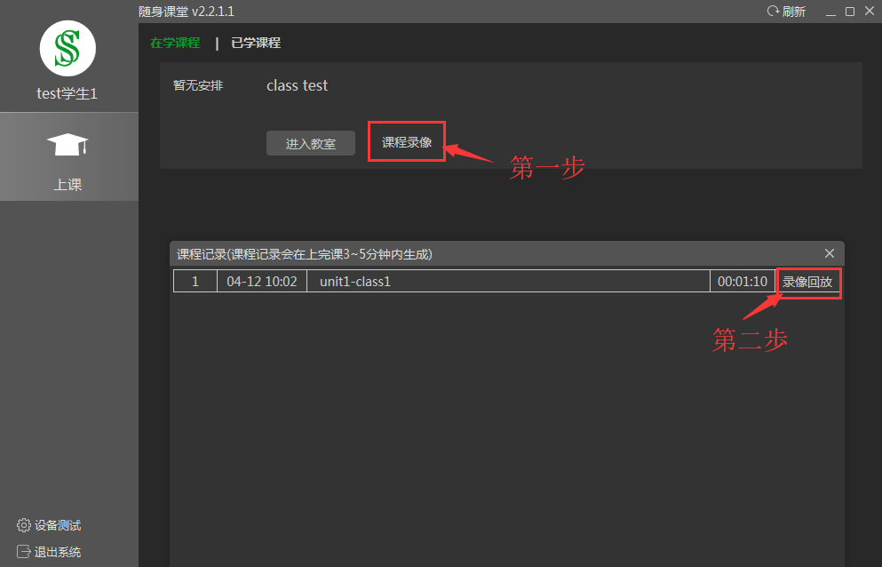 第二歩 在弹出的课程记录列表中,选择要找的录像,点击【录像回放】按钮进行播放,手机或平板查看的时候,选择要找的录像,直接点击课程标题便可回放。