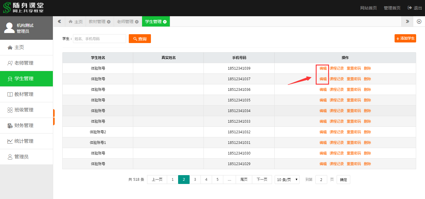 首先进入老师/学生的管理页面,在老师/学生的列表中,找到要编辑的老师/学生,点击【编辑】按钮,并修改老师/学生信息。